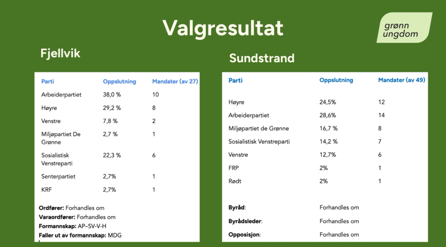 Etter en intens valgkamp er resultatene klare. Sonderingene mellom partiene er i gang, i både Sundstrand og Fjellvik kommune.